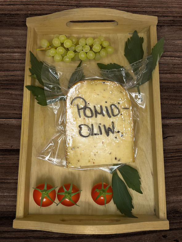 • Ser krowi z pomidorami i oliwkami to oryginalny ser holenderski o intensywnym smaku. Idealny na deskę serów, do sałatek i dań kuchni śródziemnomorskiej. Ręcznie krojony, z naturalnych składników, bez sztucznych dodatków.